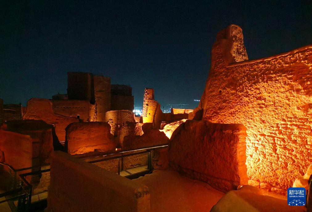 這是10月27日在沙特首都利雅得市區(qū)拍攝的迪里耶夜景。