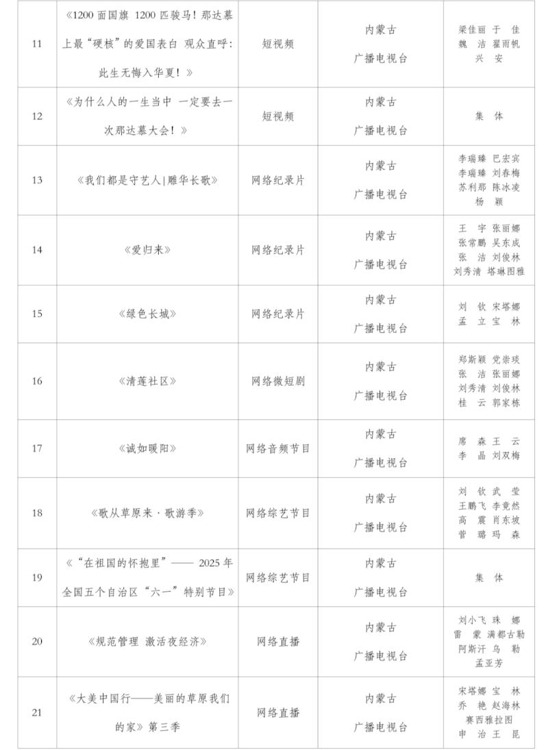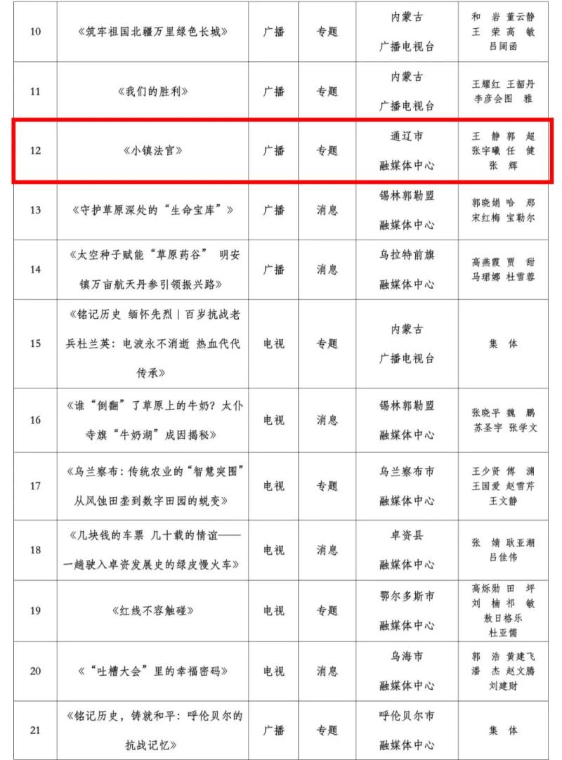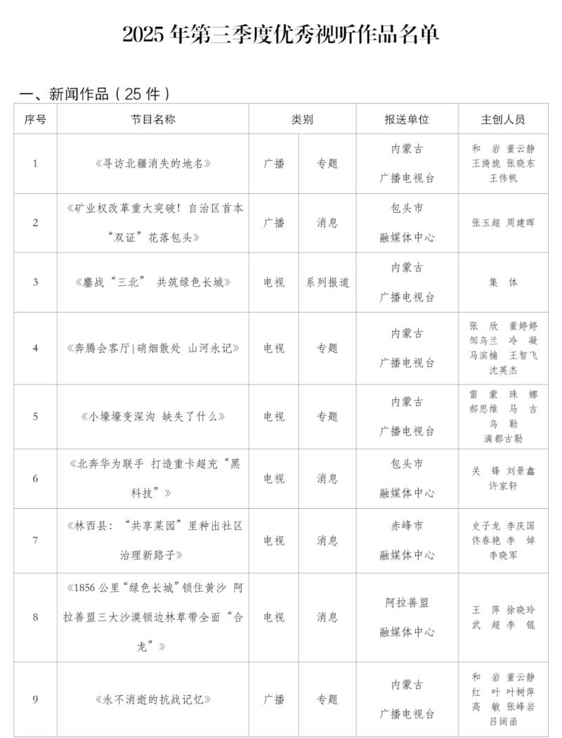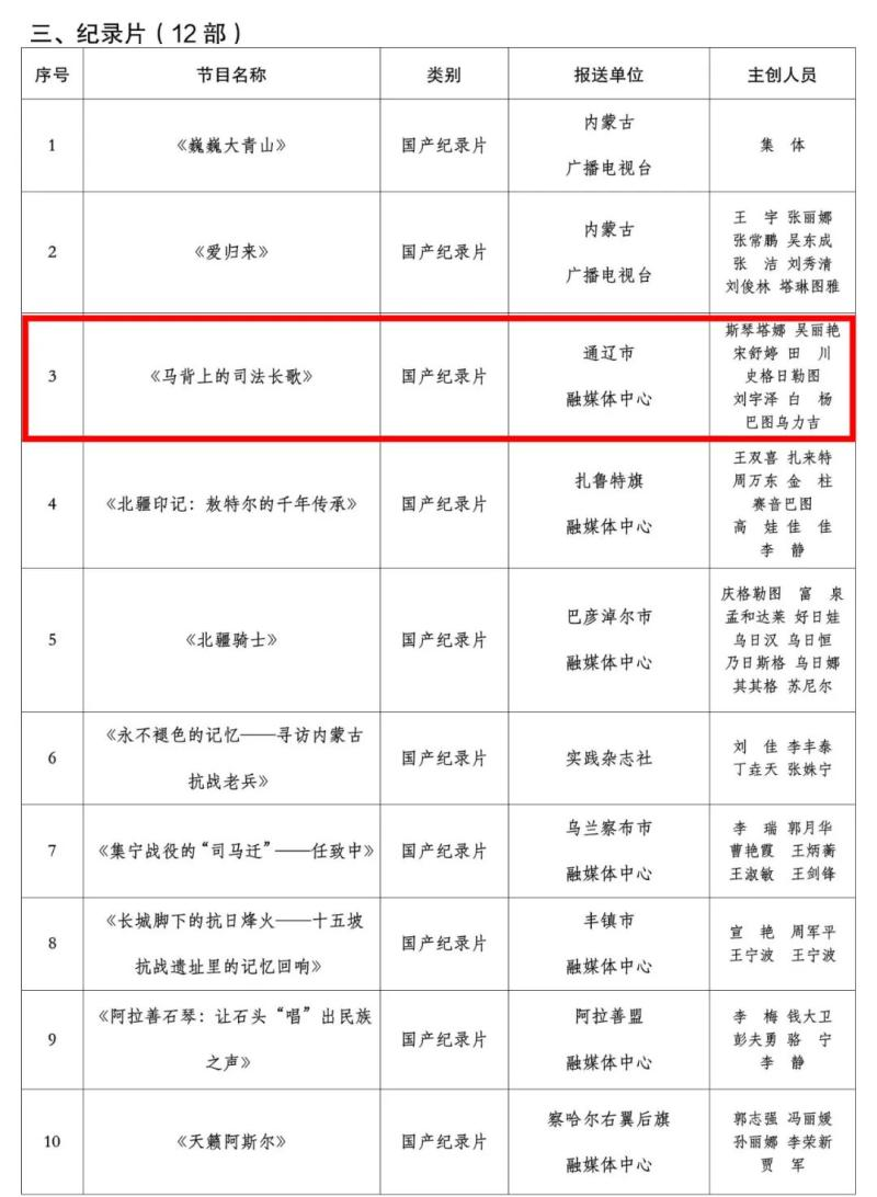 為激活創(chuàng)作動(dòng)能,聚力視聽(tīng)作品高質(zhì)量發(fā)展,著力營(yíng)造全區(qū)廣播電視和網(wǎng)絡(luò)視聽(tīng)節(jié)目“出精品、創(chuàng)佳作”的濃厚氛圍,按照年度工作安排,內(nèi)蒙古自治區(qū)廣播電視局組織開(kāi)展2025年第三季度廣播電視新聞作品、創(chuàng)新創(chuàng)優(yōu)節(jié)目、紀(jì)錄片、網(wǎng)絡(luò)視聽(tīng)節(jié)目和公益廣告5項(xiàng)推優(yōu)活動(dòng)。通遼市融媒體中心2件優(yōu)秀作品上榜。其中,廣播專題《小鎮(zhèn)法官》獲評(píng)“優(yōu)秀新聞作品”;紀(jì)錄片《馬背上的司法長(zhǎng)歌》榮獲“優(yōu)秀紀(jì)錄片”;同名短視頻獲評(píng)“優(yōu)秀網(wǎng)絡(luò)視聽(tīng)作品”。