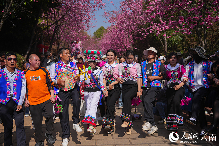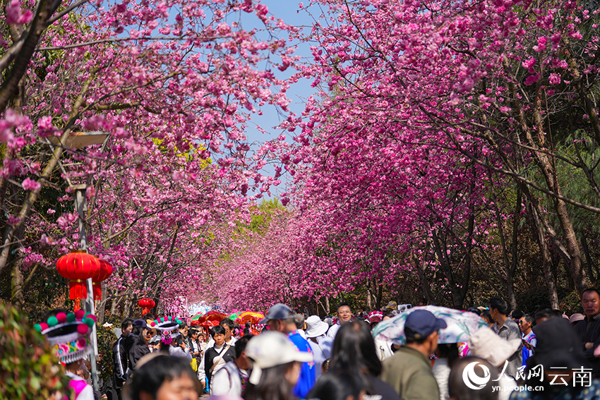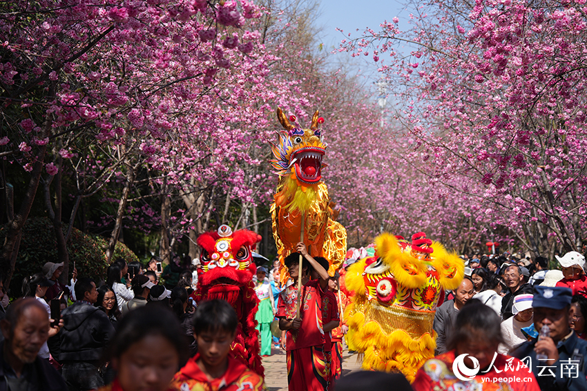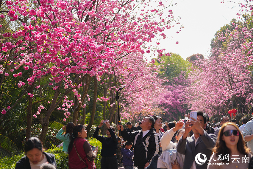 人民網(wǎng)昆明3月2日電 (記者李發(fā)興)近日,昆明市呈貢區(qū)洛龍公園內的櫻花競相綻放,吸引眾多市民和游客前來踏青賞花、打卡拍照,盡享春日美好。